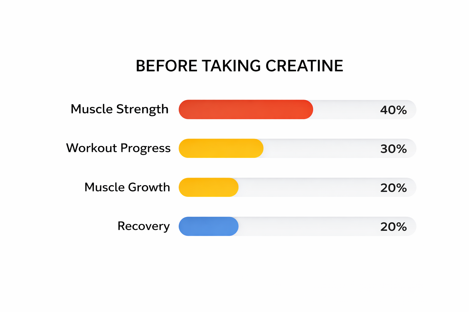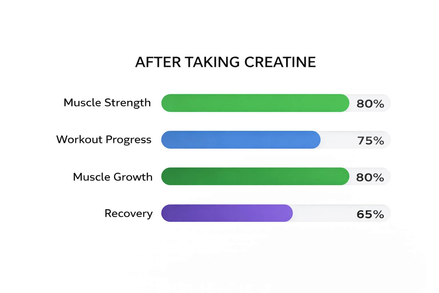 Progress comes slower and performance gains are limited. Without creatine supplementation, muscles rely only on baseline ATP stores, leading toquicker fatigue, slower strength increases, and lower training volume. Recovery takes longer, muscle growth is more gradual, and plateaus happen sooner — making it harder to consistently push past previous limits.